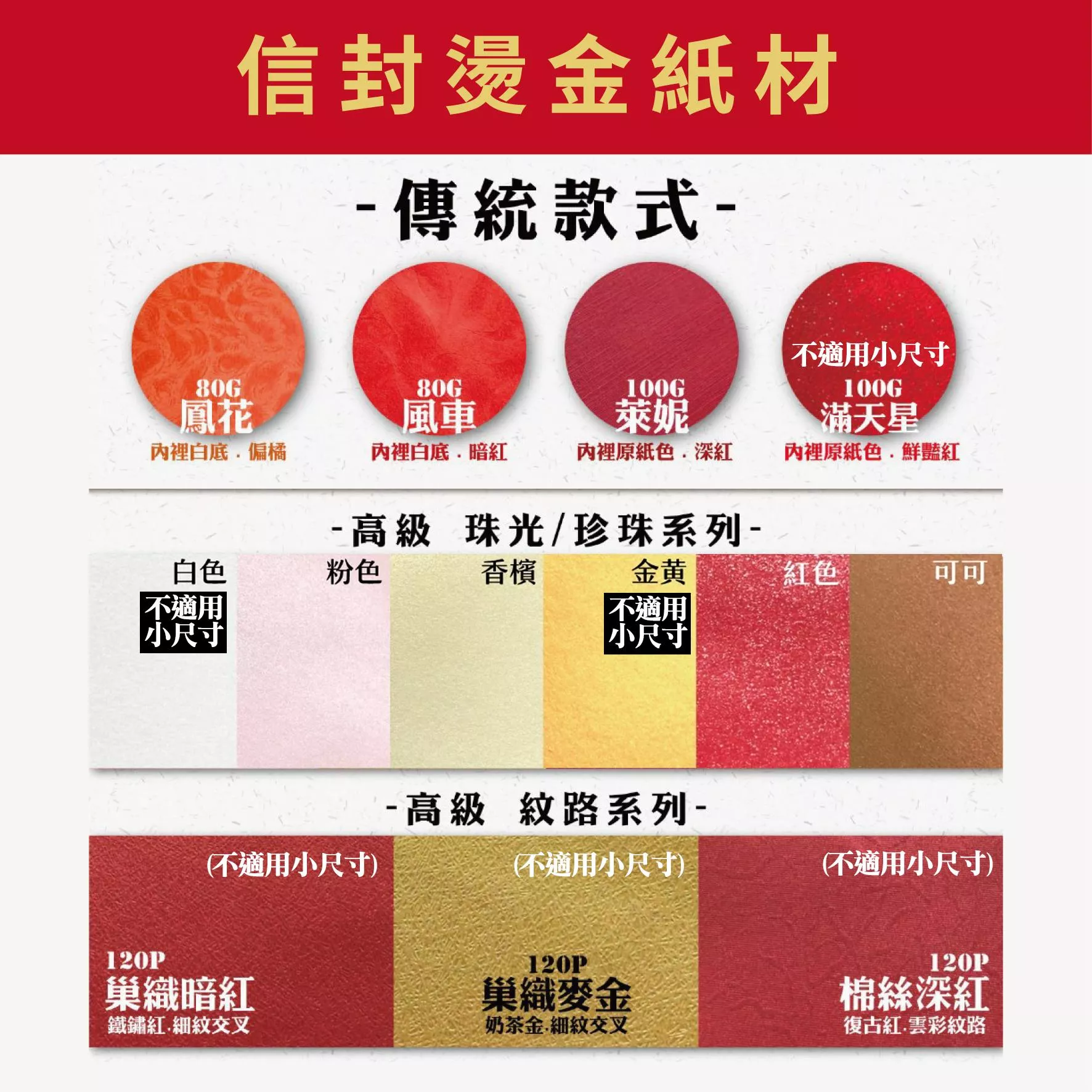 *小提醒*信封燙金因為屬高溫高壓製作~所以壓印的痕跡有時難免會印到後面是屬無法避免之現象喔~