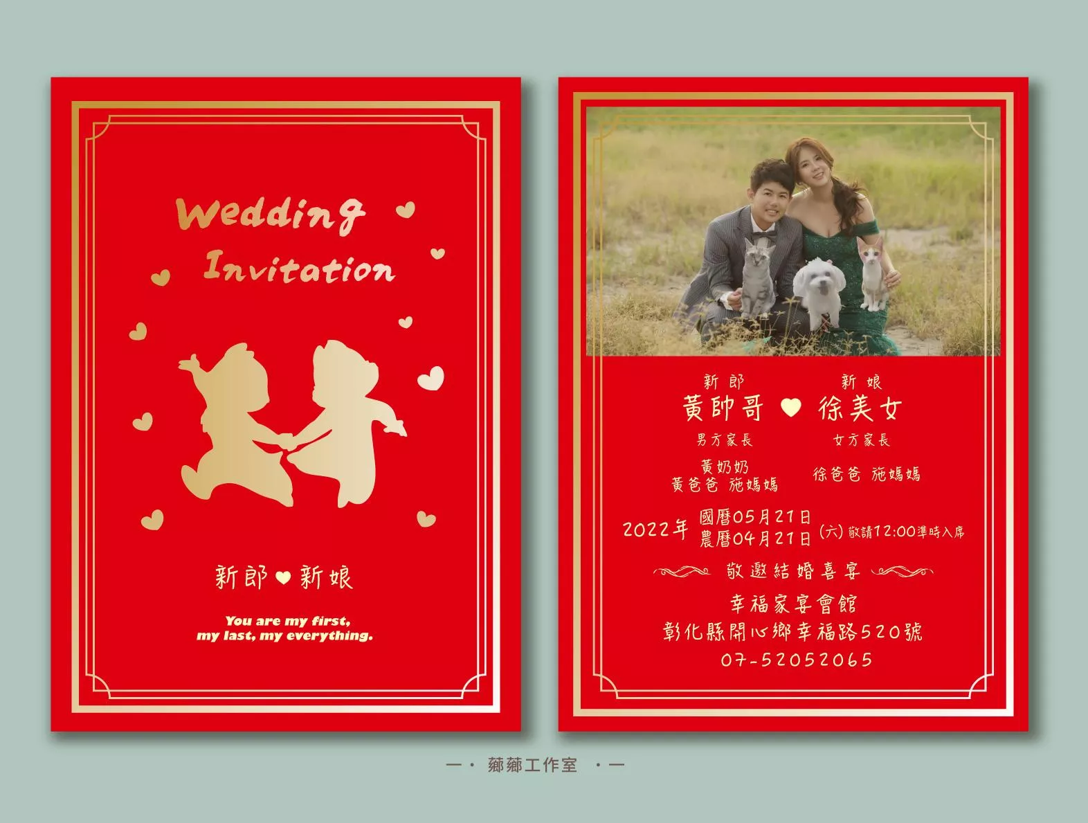 *小提醒*信封燙金因為屬高溫高壓製作~所以壓印的痕跡有時難免會印到後面是屬無法避免之現象喔~