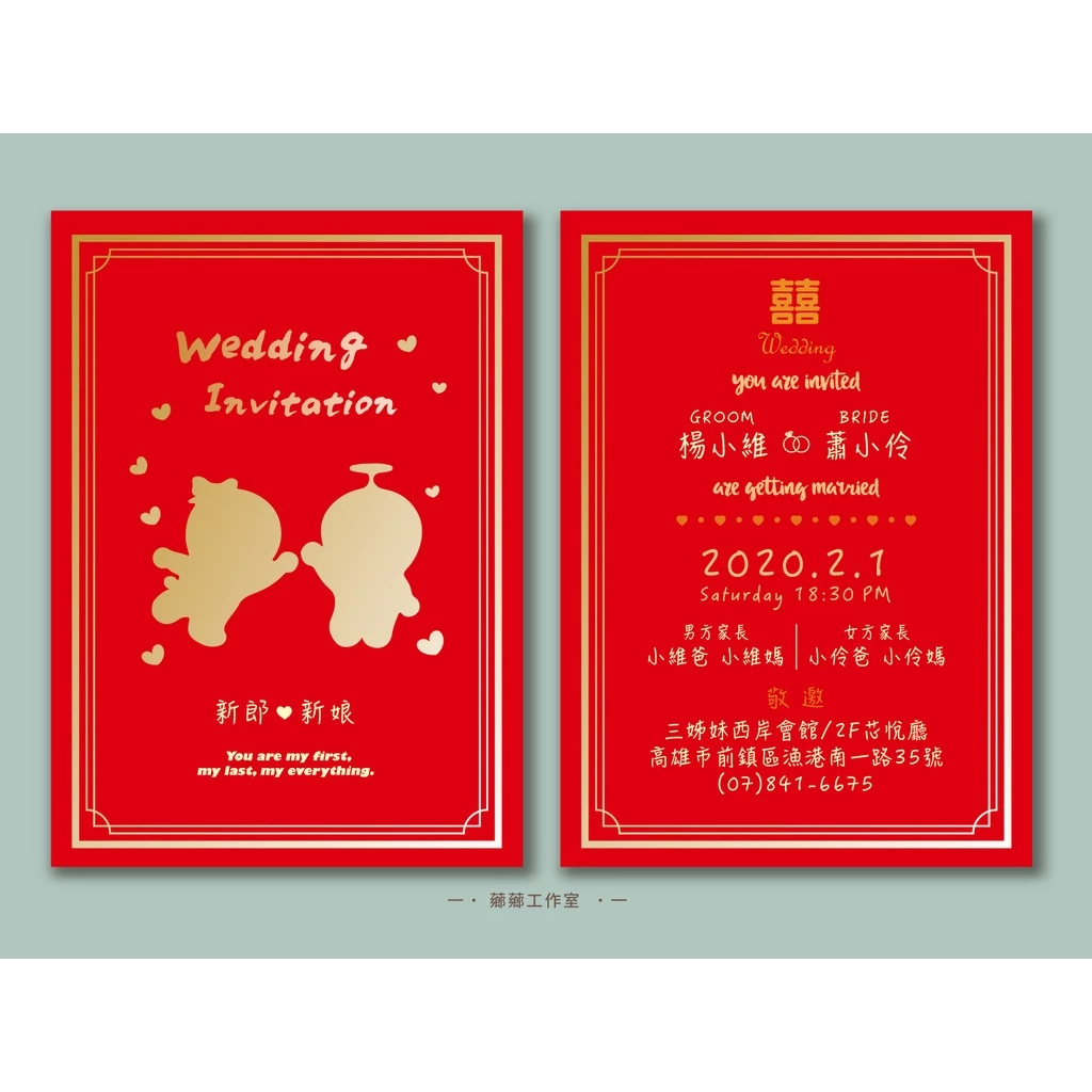 *小提醒*信封燙金因為屬高溫高壓製作~所以壓印的痕跡有時難免會印到後面是屬無法避免之現象喔~